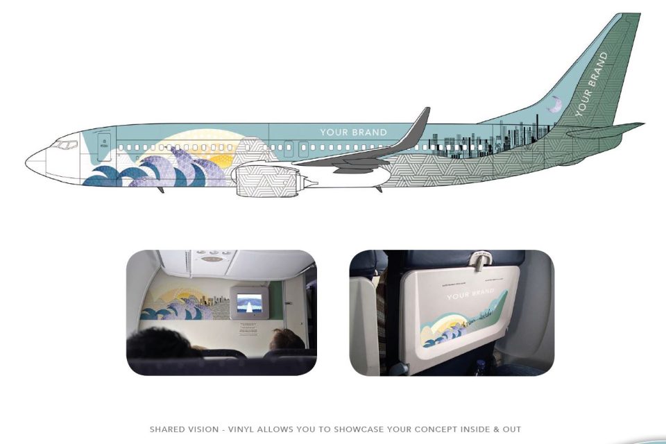 certificated adhesive for mandatory markings and placards, livery and cabin decoration as well as stencils for painting